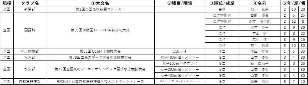 11月20日(水) 本日は朝のSHRの時間を使って入賞披露を行いました。 今学期も多くの入賞者があり、県大会以上であっても、 全員を紹介することができませんでしたので、 この場をかりて紹介をしておきたいと思います。