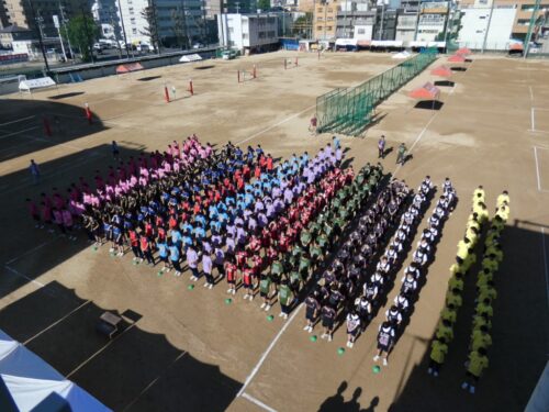 3年生はクラスで作成したオリジナルシャツを着て参加することが認められており、 様々なシャツを着て競技をするクラスがあります。 今年は、全員の写真を使ったシャツなどが目立った印象でした。