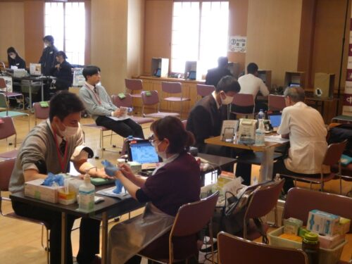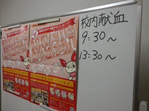 12月9日(火) 本日は校内献血を実施し、2年生と3年生に教員も加え、75名の協力がありました。