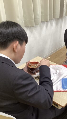 お昼に安芸(広島)地方の精進料理である「煮ごめ」を実食する体験を行いました。